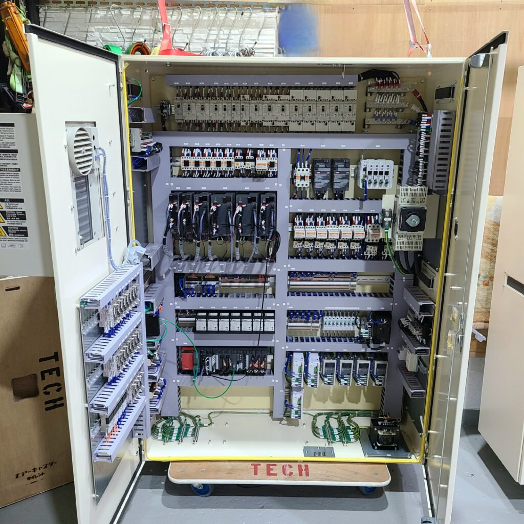 三菱電機のCC-Linkネットワークに対応した制御盤を製作いたしました。複数の機器を高速通信で接続し、生産ラインの集中管理を実現。配線の簡素化とメンテナンス性向上を両立させた、効率的な制御システムに仕上げました。